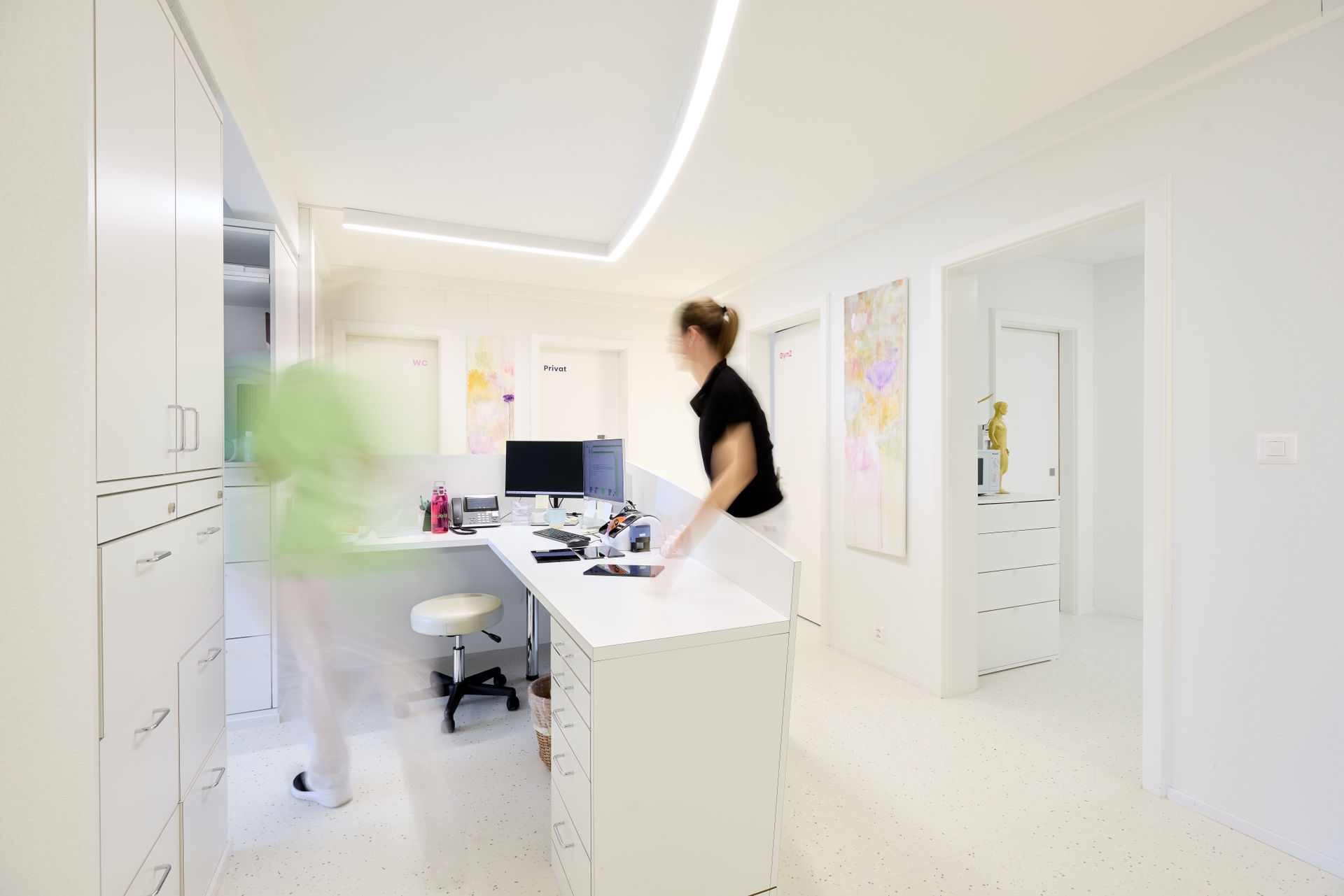 Eine bestehende Arztpraxis wurde im Rahmen einer Übernahme zu einer modernen Praxis für Frauenheilkunde umgebaut und gestalterisch aufgefrischt. Innerhalb eines straffen Zeitplans von nur zwei Monaten wurden der Bodenaufbau erneuert, das Echtholzparkett aufgearbeitet sowie Sanitär- und Elektroinstallationen ersetzt. Zudem erhielten Wand- und Deckenflächen eine helle, freundliche Gestaltung. Das Ergebnis ist eine lichtdurchflutete, einladende Praxis, die Funktionalität, zeitgemäße Innenarchitektur und Wohlbefinden optimal vereint. Ein gelungenes Beispiel für Praxisgestaltung, Innenausbau und Architektur im Gesundheitswesen.